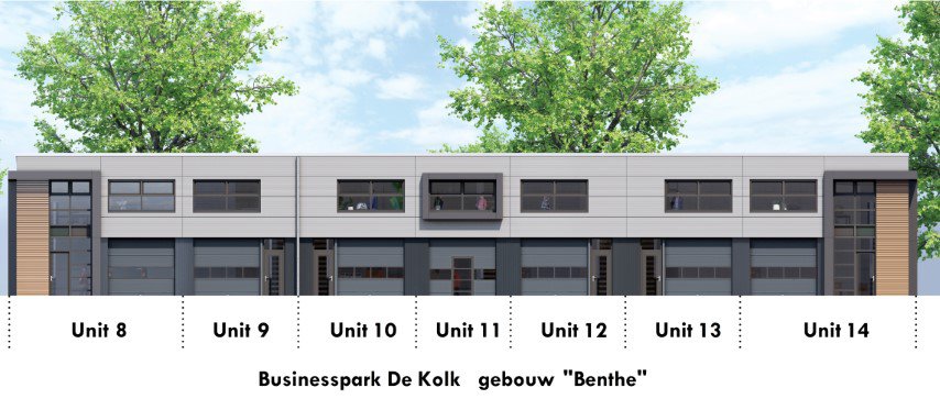 De hoge kwaliteitseisen zijn voor de ontwikkelaar uitgangspunt geweest voor het ontwerp van de totaal 22 bedrijfsruimtes op businesspark De Kolk. De bedrijfsruimtes variëren in grootte tussen de 45 m2 en de 200 m2 BVO. Het betreft een complex met 2 gebouwen; gebouw “Ariana” met 8 bedrijfsunits en gebouw “Benthe” met 14 bedrijfsunits. Het hoogwaardige materiaalgebruik, de moderne uitstraling en de riante hoogte geven uw onderneming een zeer professionele uitstraling.