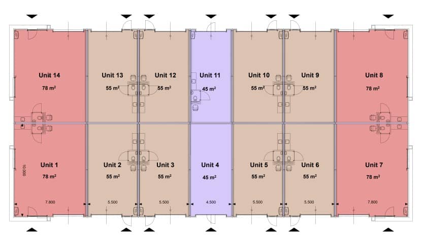 - Alle bedrijfsunits kunnen optioneel worden voorzien van een verdiepingsvloer